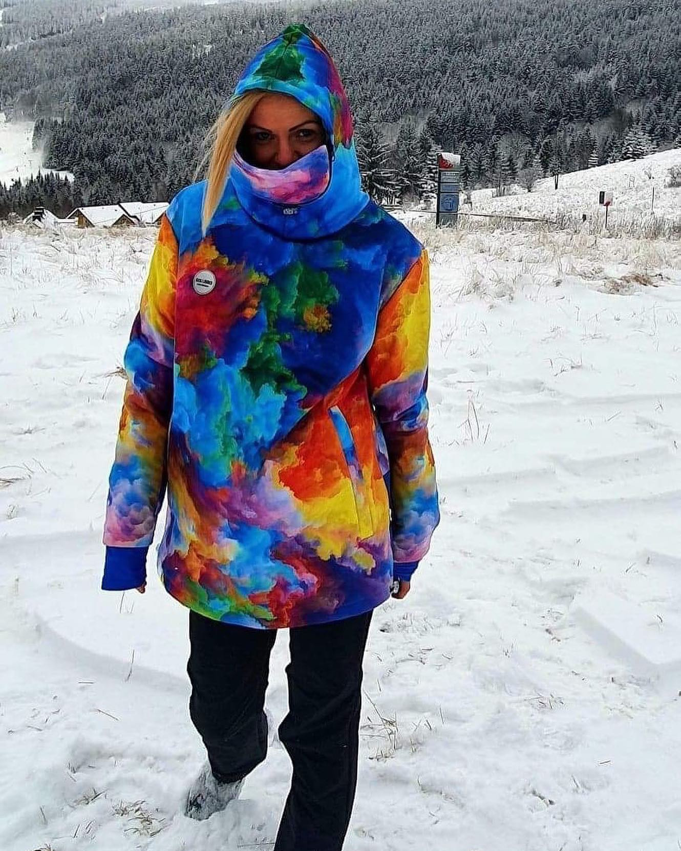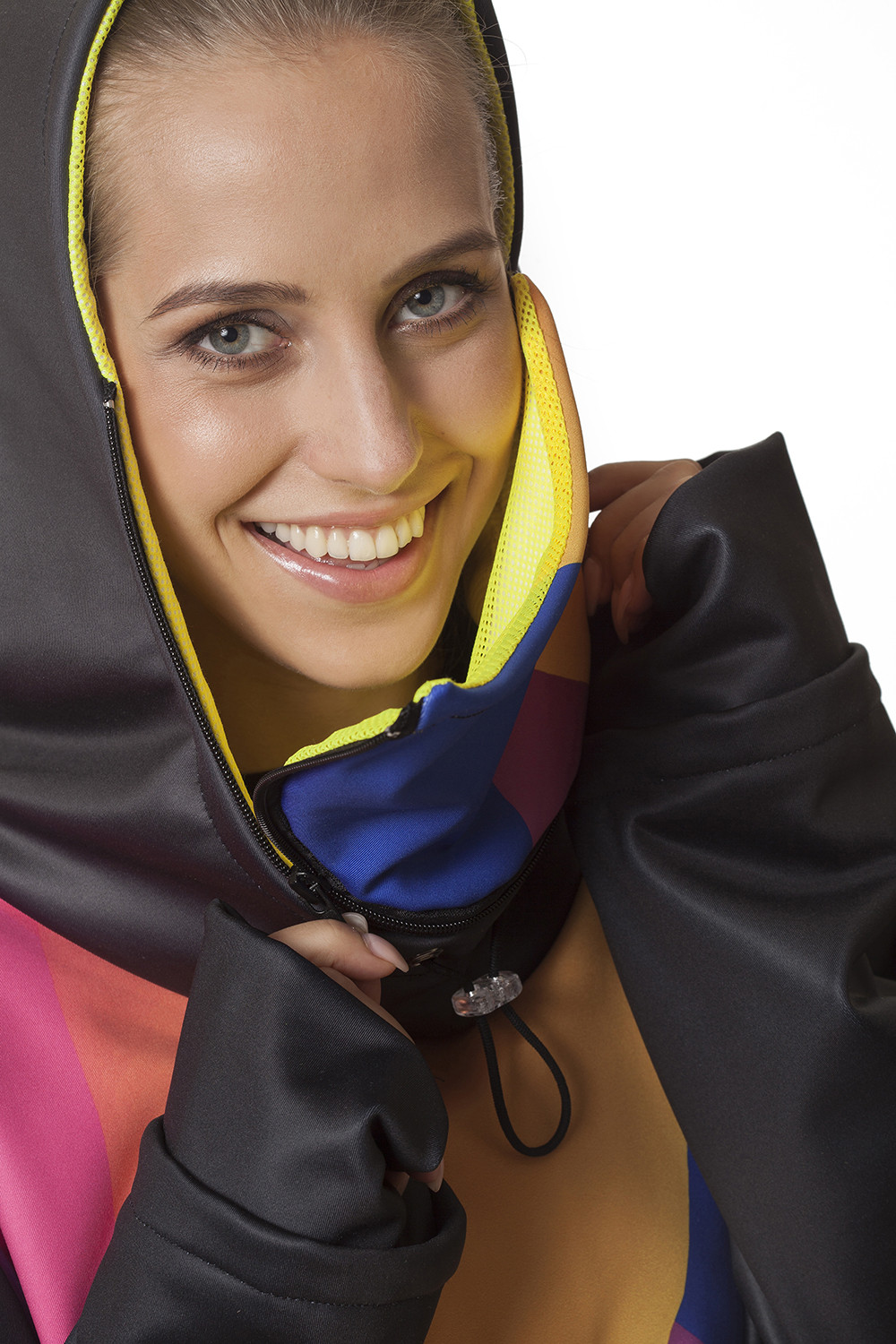 Kurtka wyposażona jest w odpinaną maskę, którą można schować do jednej z dwóch kieszonek umieszczonych po zewnętrznej stronie przedramienia. Jedna z tych kieszeni w sezonie zimowym jest miejscem przechowywania karty ski pass. Dwie, duże kieszenie boczne zapinane na zamek pomieszczą rękawice i gogle.